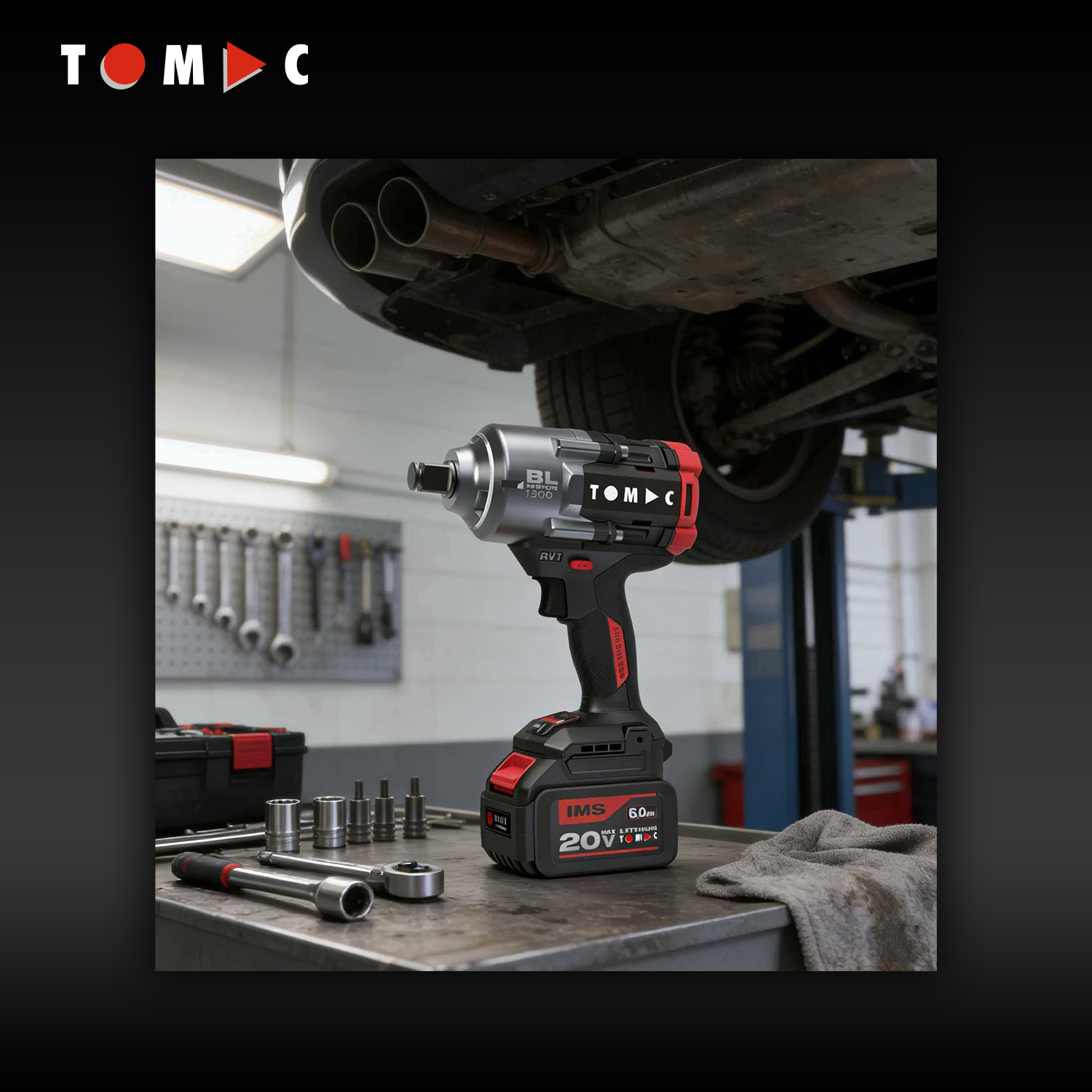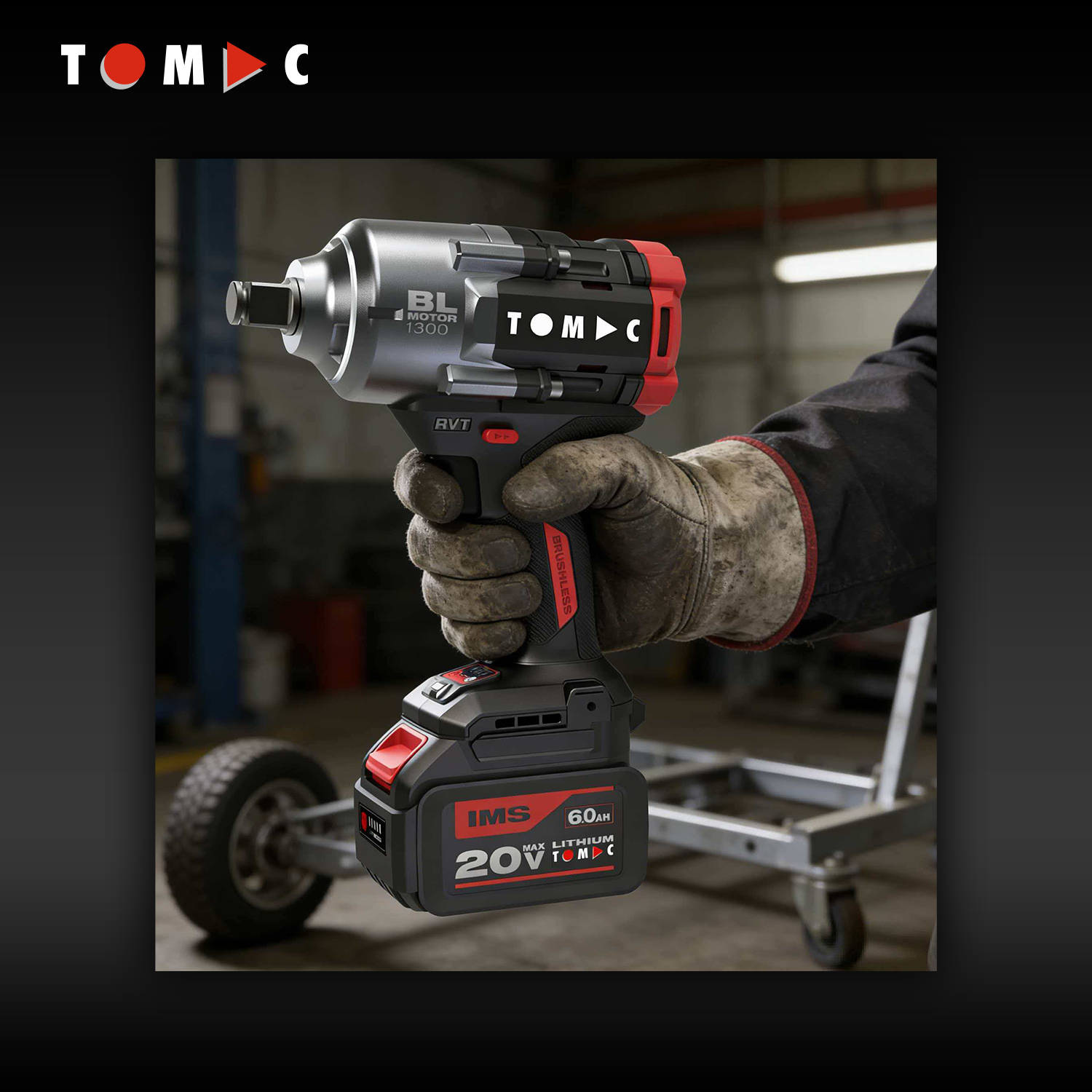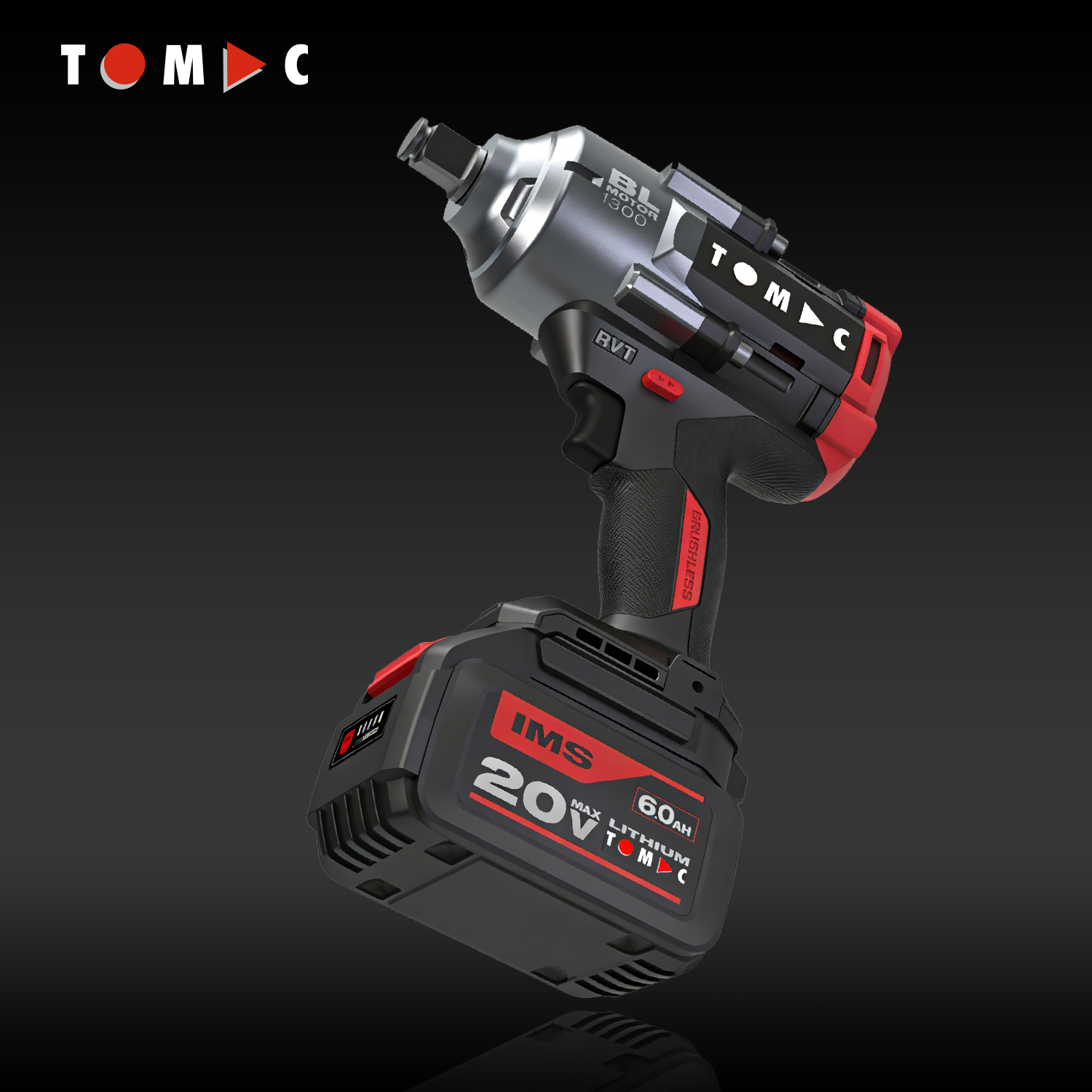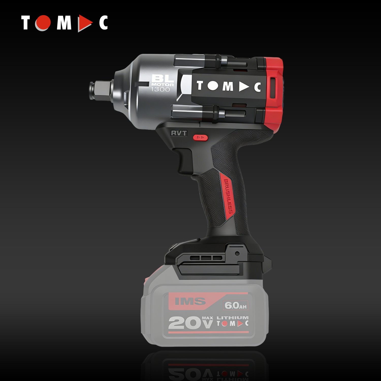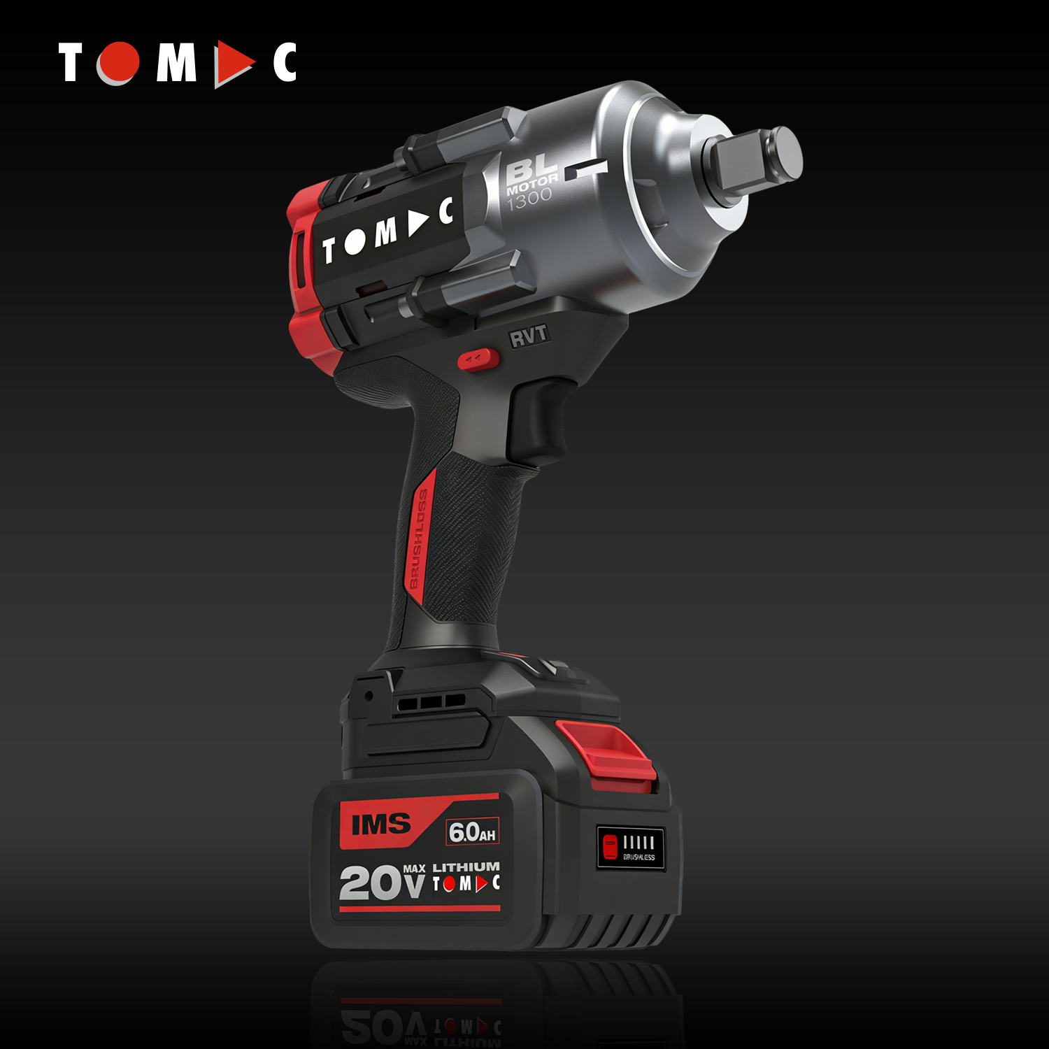 مفتاح تأثير بلا فرشاة من توماك، طراز TC11221300A، بجهد ٢٠ فولت وعزم دوران ١٣٠٠ نيوتن·متر، بقطر ١/٢ بوصة، مزوَّد بشهادة المطابقة الأوروبية (CE)