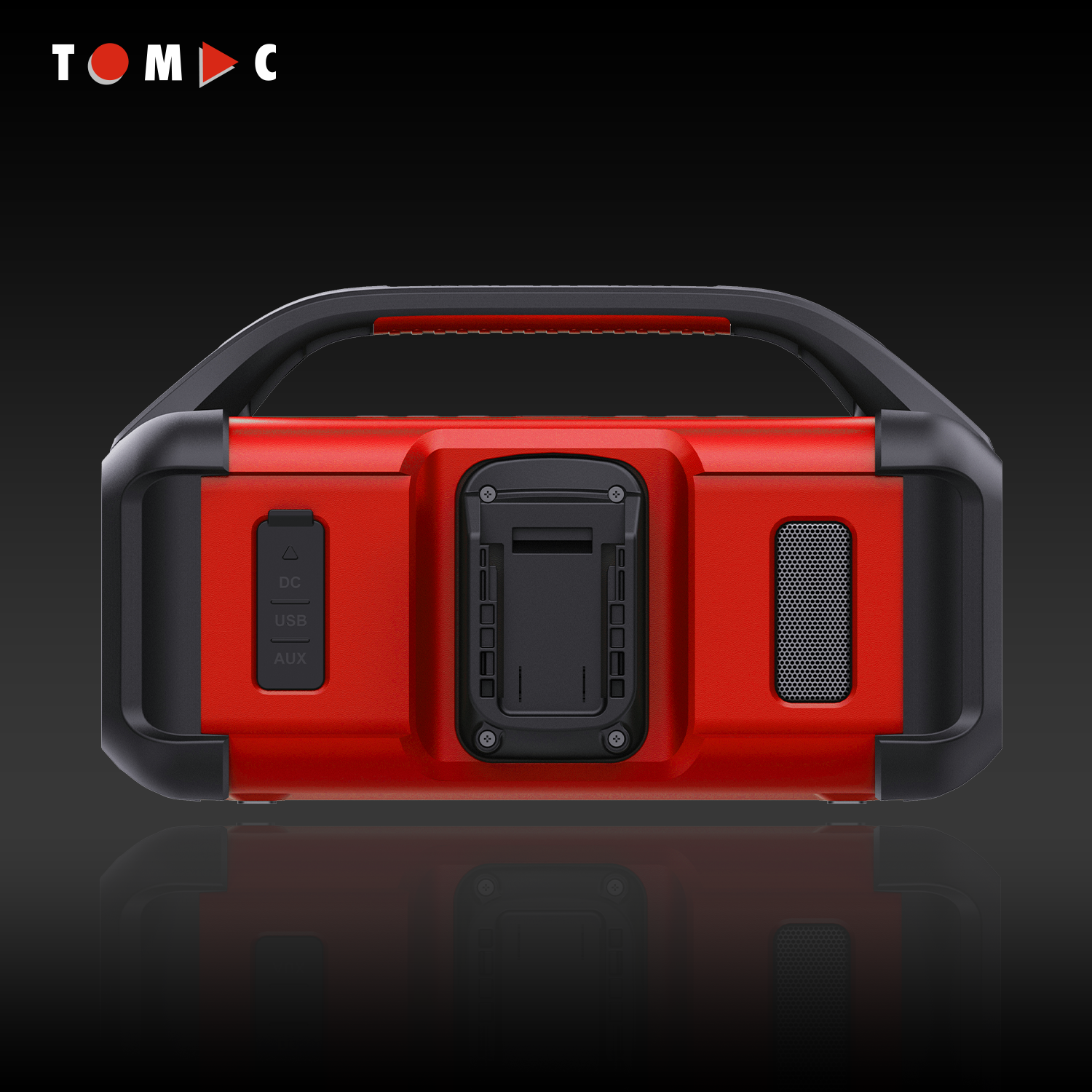 - تصميم متين مخصص لمواقع العمل، مع مدخلات AUX/USB/تيار متردد (AC) ومنفذ إخراج USB بجهد ٥ فولت / ٢,١ أمبير.