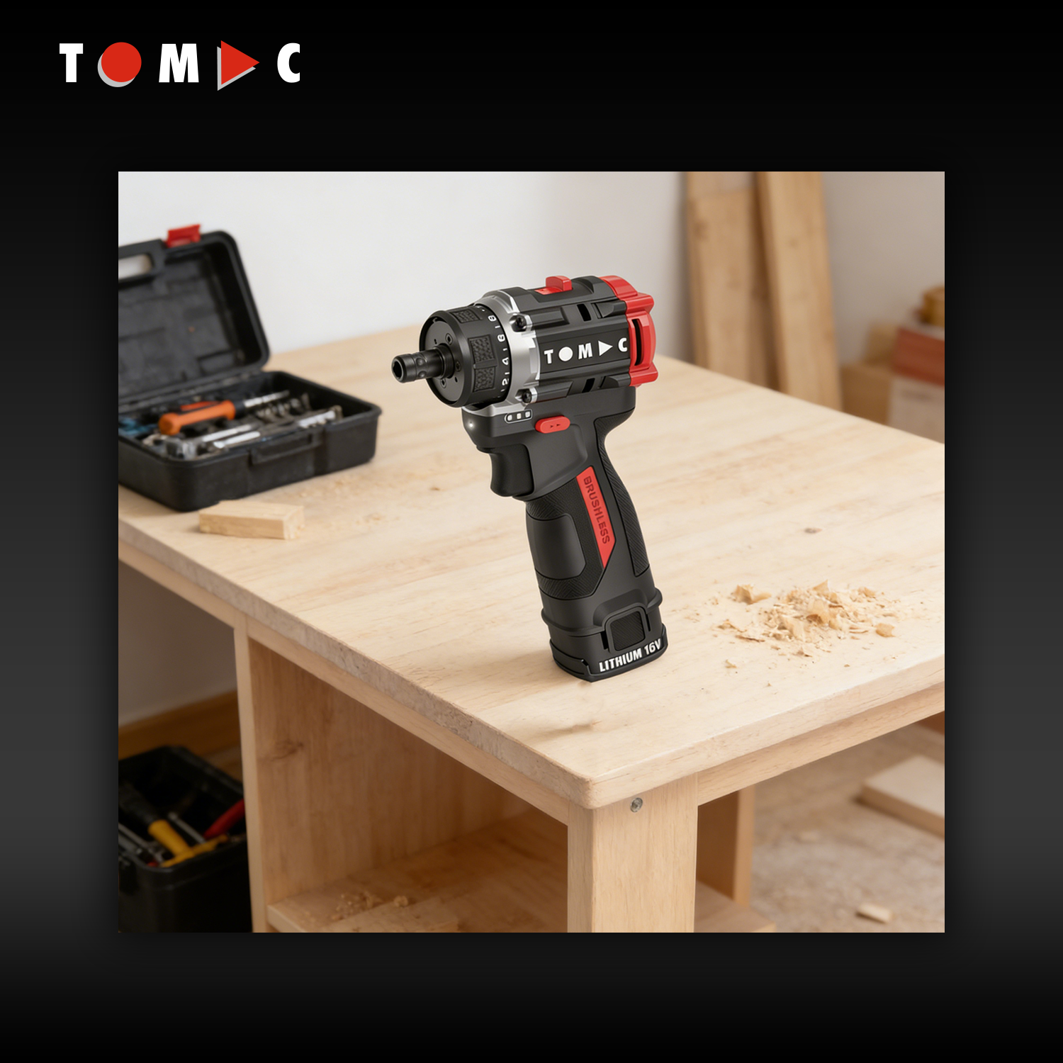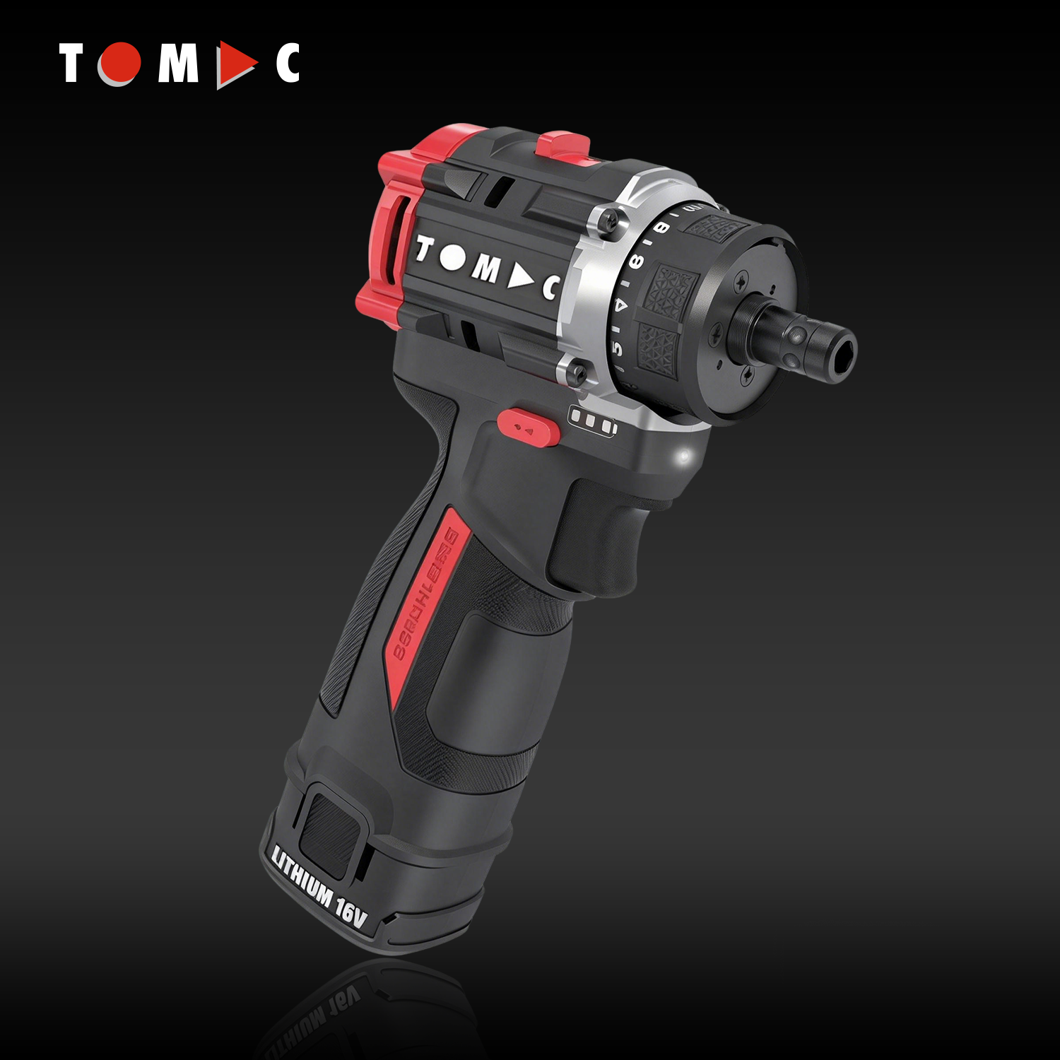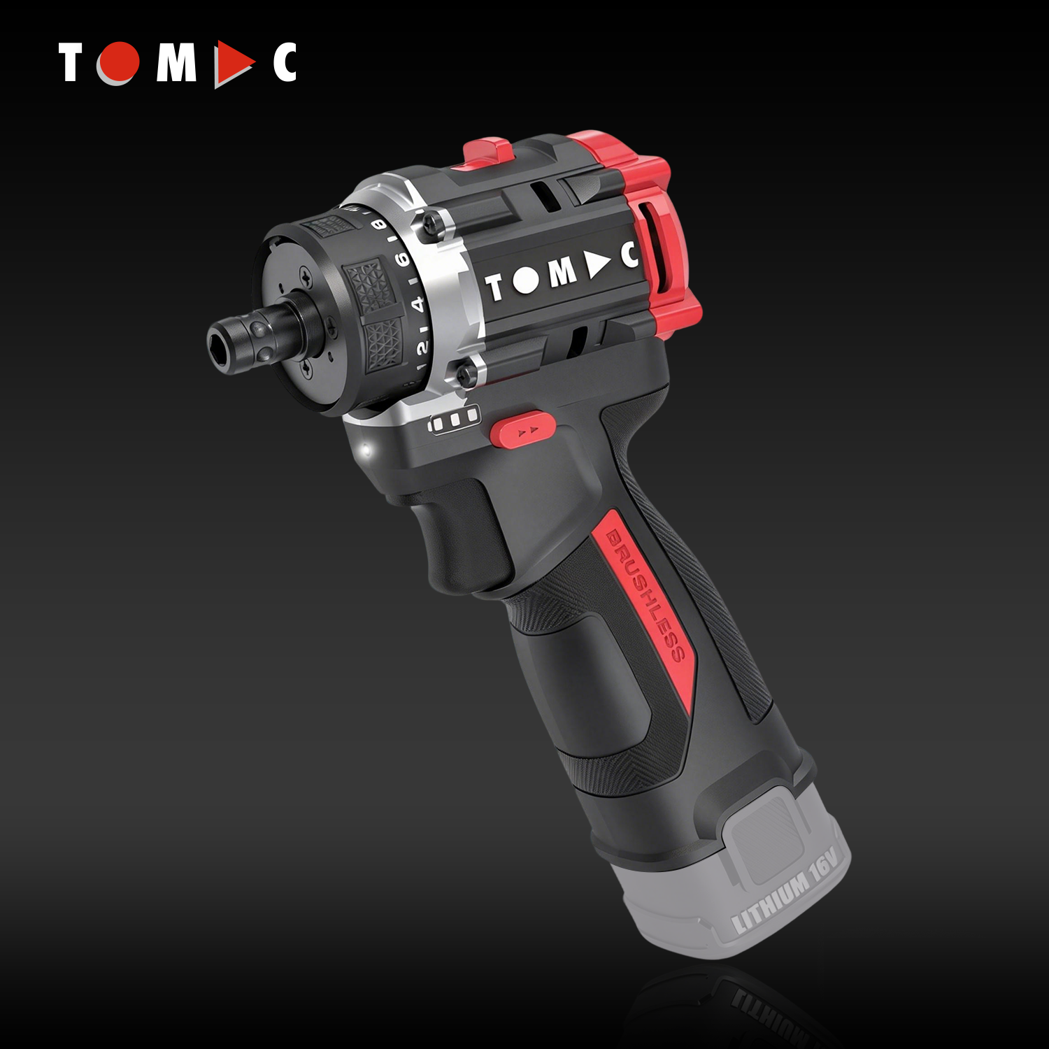 TC115250B TOMAC, trapano a batteria da 16 V con tecnologia Li-ion e motore senza spazzole, mandrino a sgancio rapido da 1/4" esagonale, coppia massima 50 Nm, conforme alla normativa CE