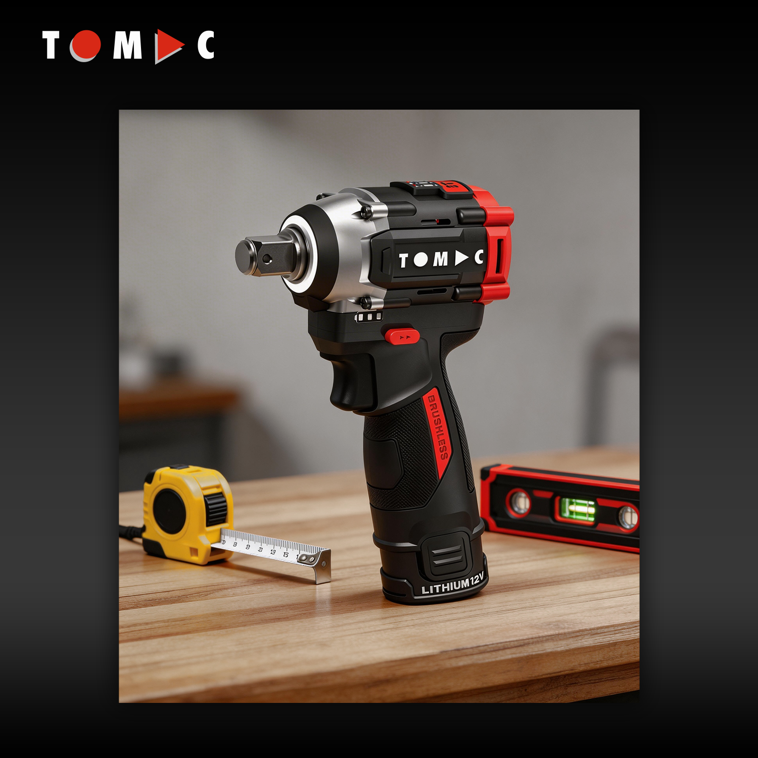TC1122160B TOMAC 12 V borstelloze draadloze inslagmoersleutel, 160 Nm, 1/2" steunvlak, schaduwvrije verlichting, CE-gecertificeerd