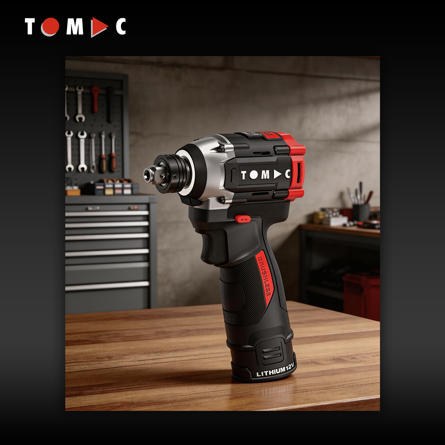 TC1152150C TOMAC 12 V borstelloze draadloze multifunctionele inslag-schroevendraaier, 150 Nm, 1/4" + 1/2", schaduwloos LED-licht, CE-gecertificeerd