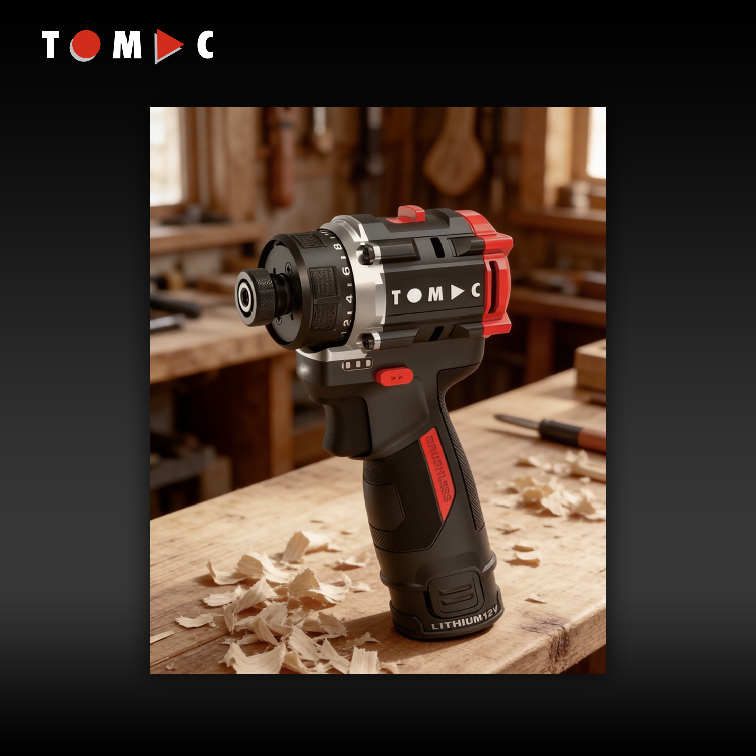 TC115245A TOMAC, Furadeira/Parafusadeira Sem Fio de 12 V com Motor sem Escovas, 45 Nm, Hexagonal de 6,35 mm, 250 W, Certificada CE