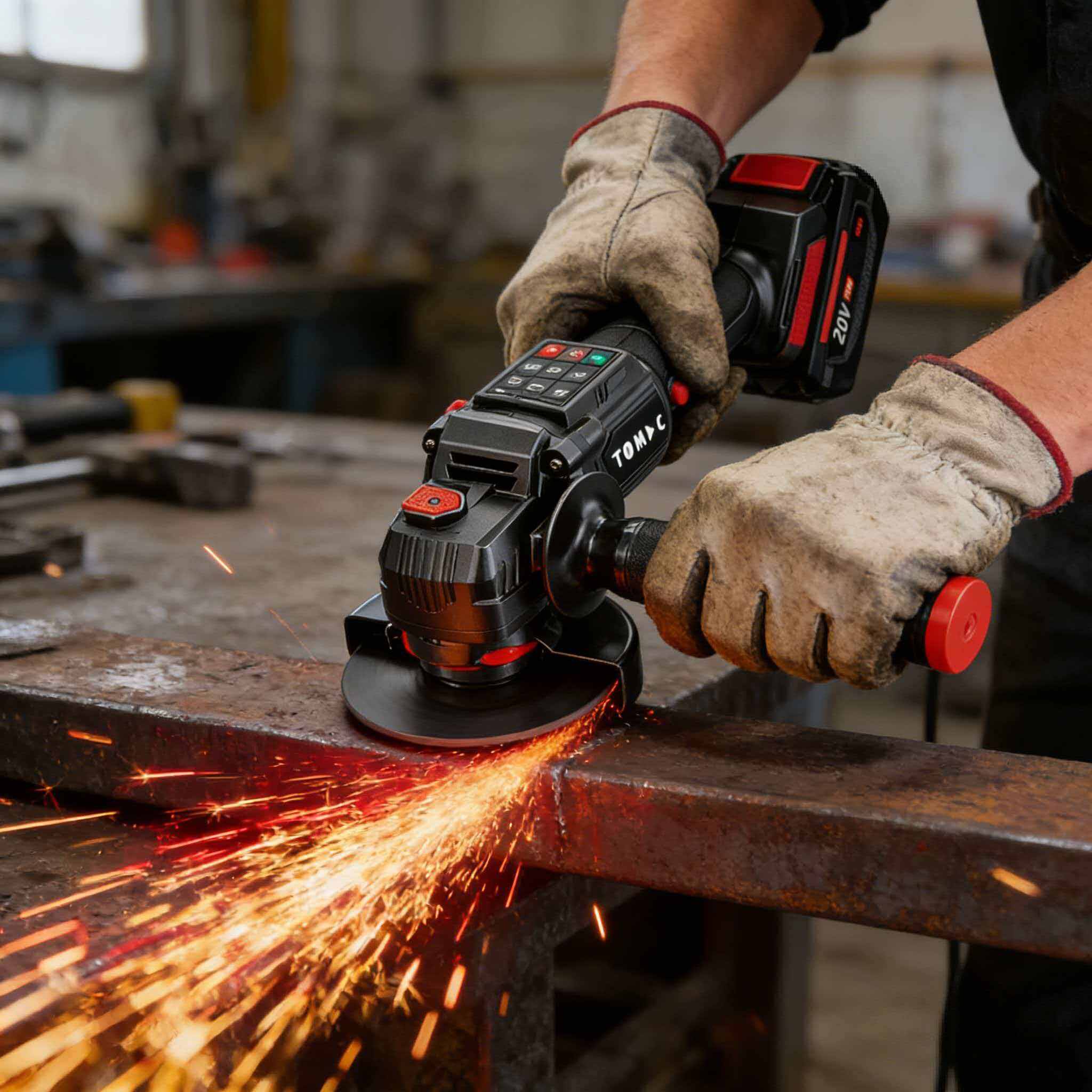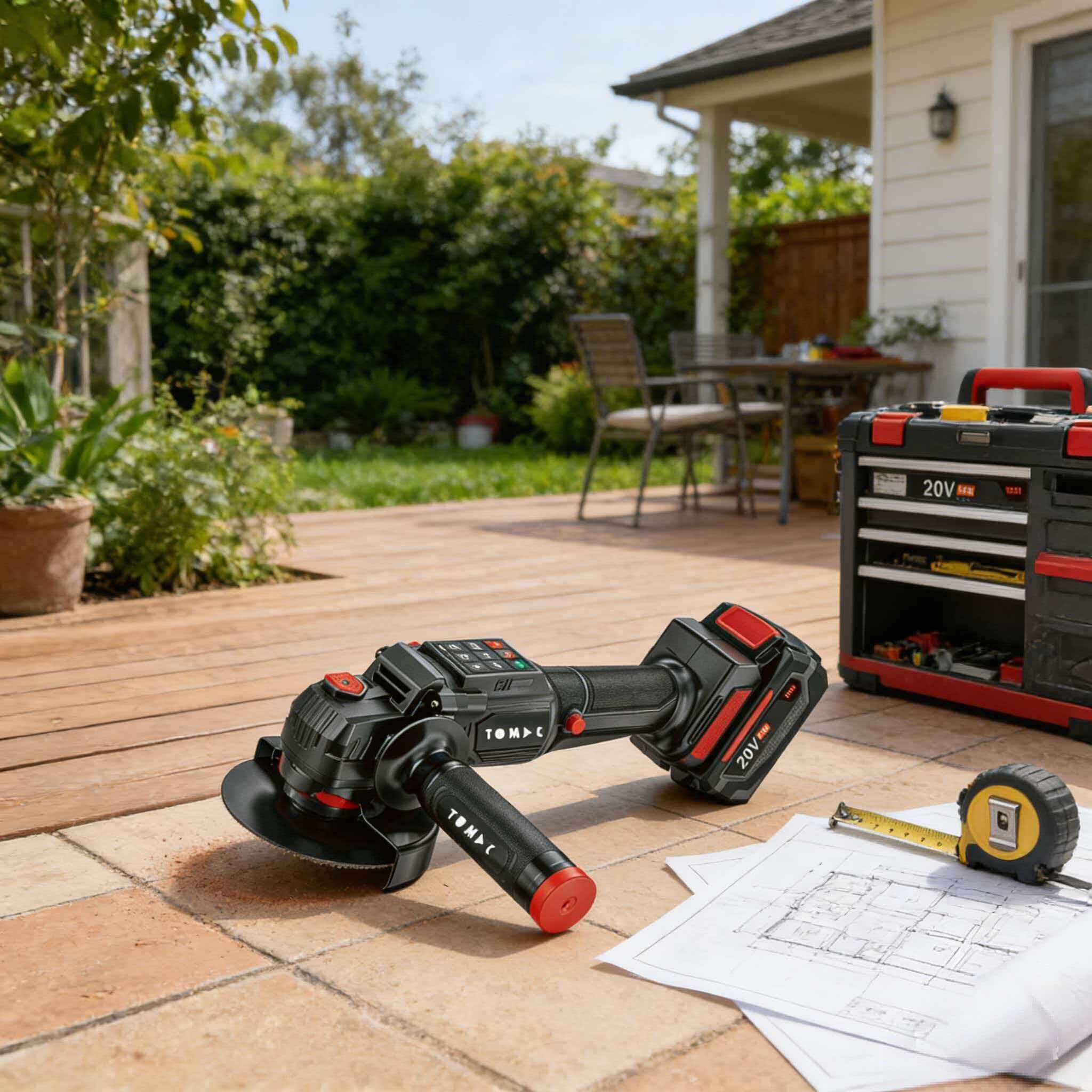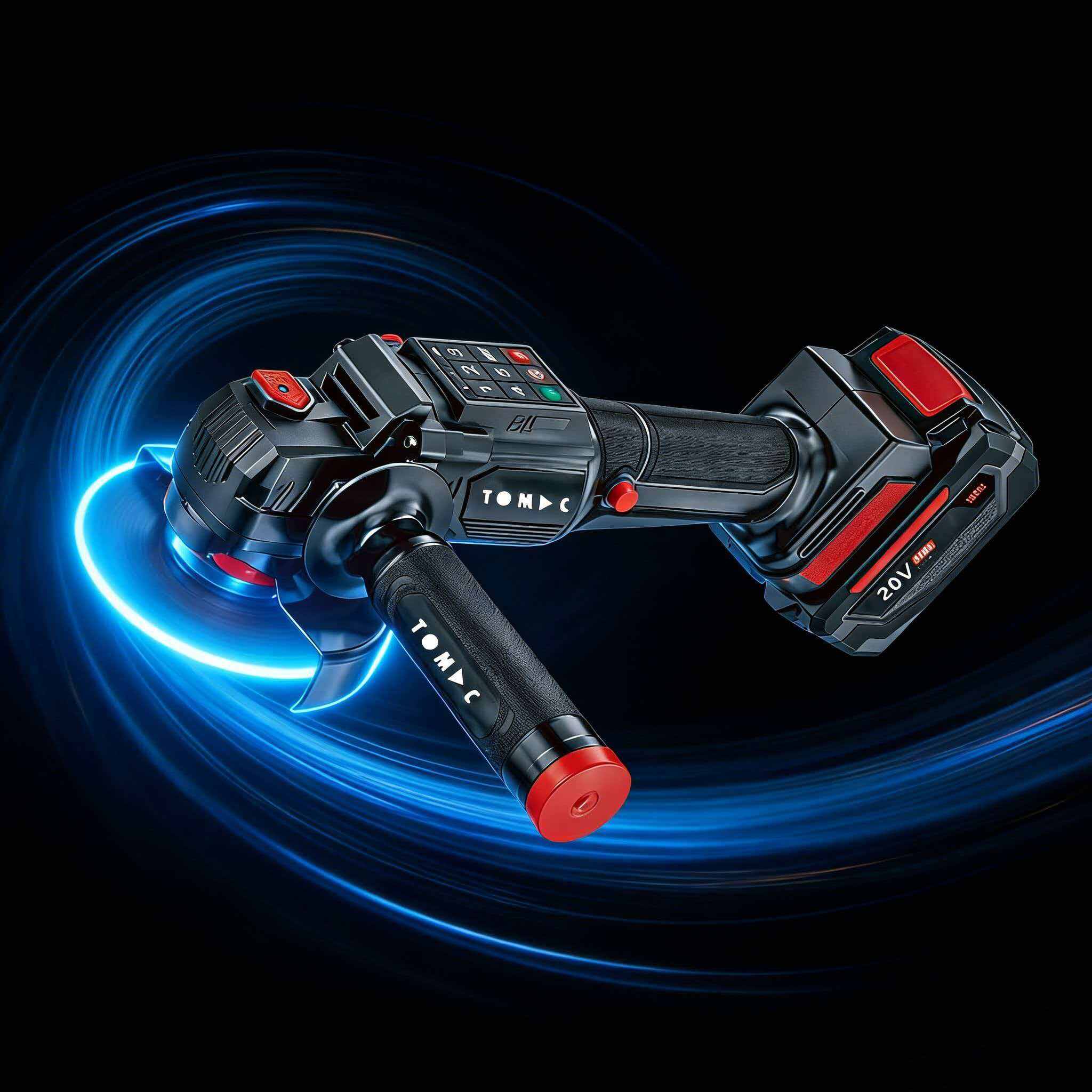 TC113225-1 TOMAC 20V Brushless Cordless Angle Grinder – Digital Display, 5-Speed Control, ADT Smart Load Acceleration, 100mm/125mm Disc, 9500rpm, 4.0Ah/6.0Ah Battery, Professional Variable Speed Kit,CE certified