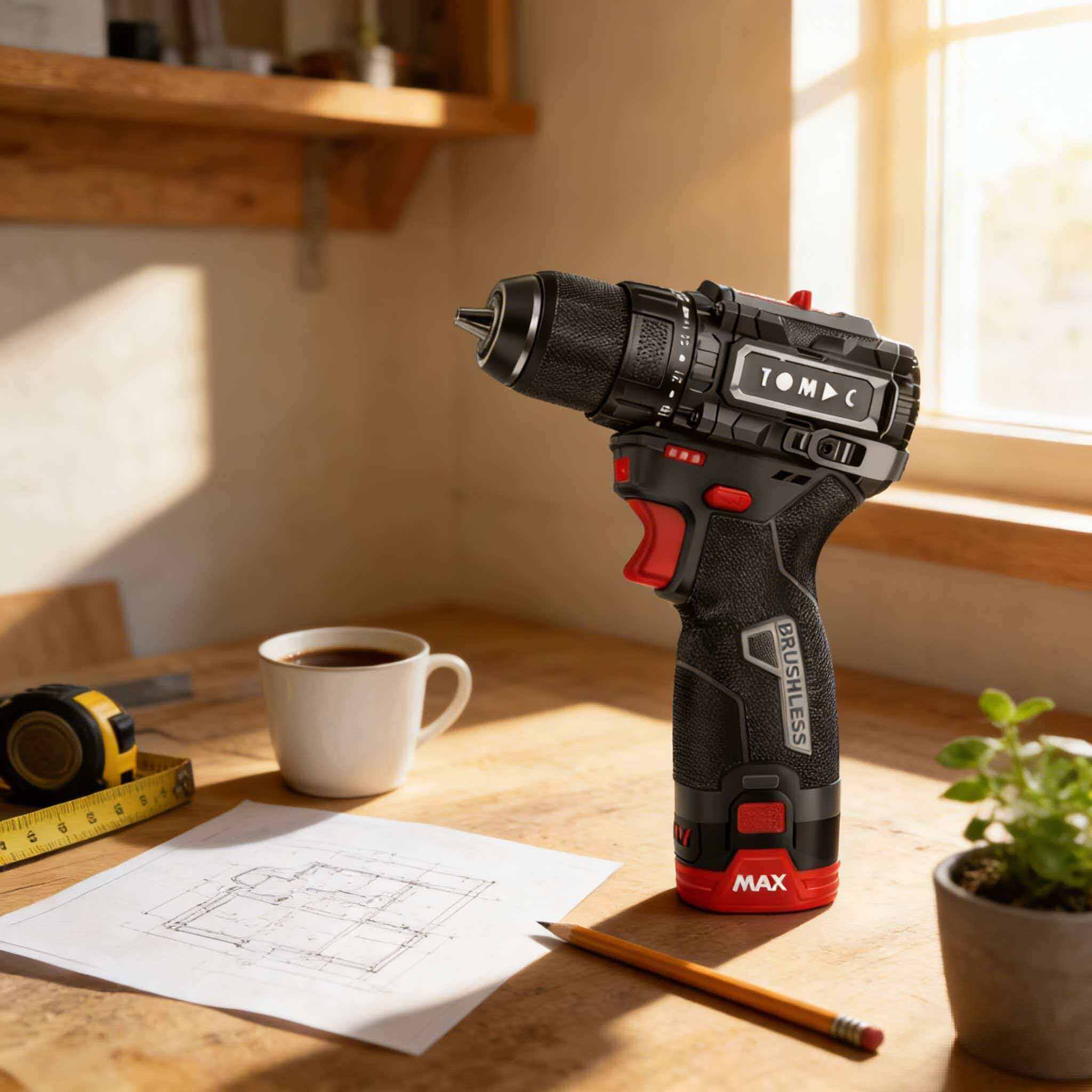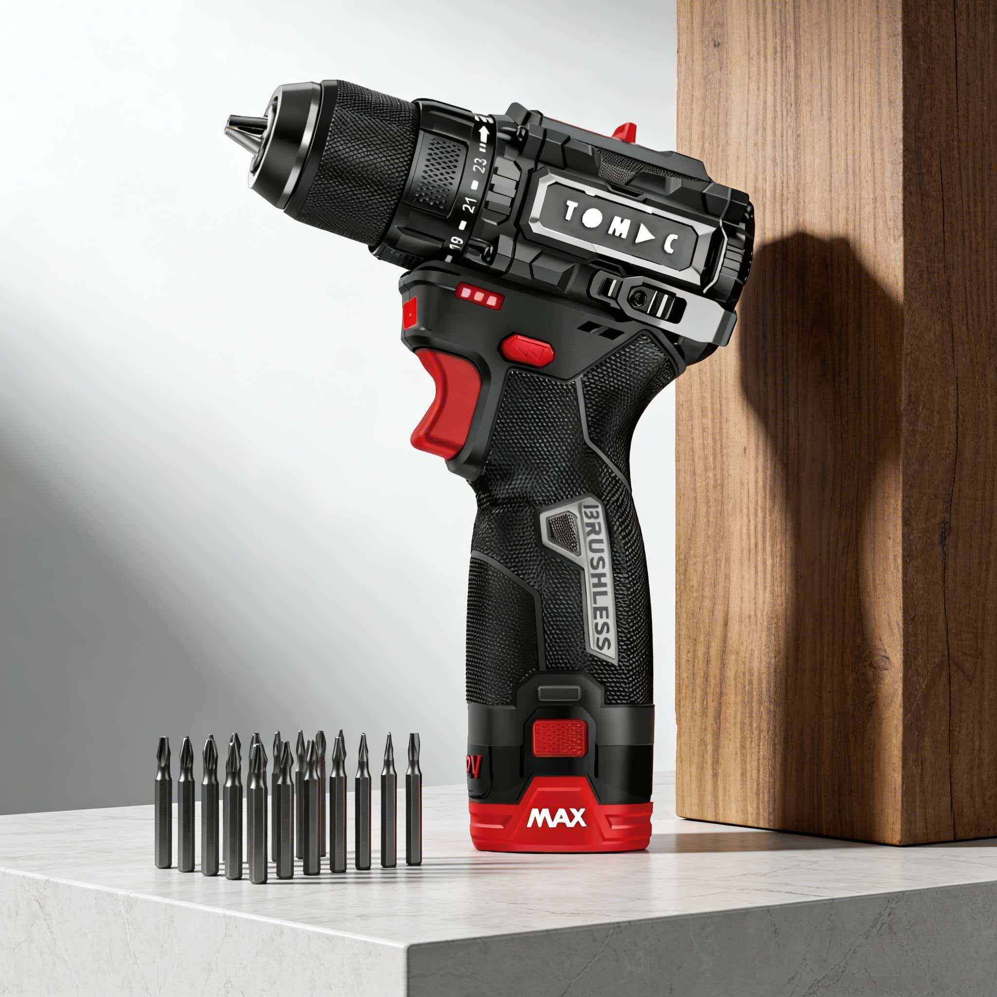 TC114235 TOMAC 12V Brushless Cordless Drill – 35N·m Torque, 2‑Speed (450/1800rpm) Electric Drill Driver with 0.8–10mm Keyless Chuck and 2.0Ah Lithium‑Ion Battery, Includes Small Hook, Ideal for Home DIY Applications,CE certified