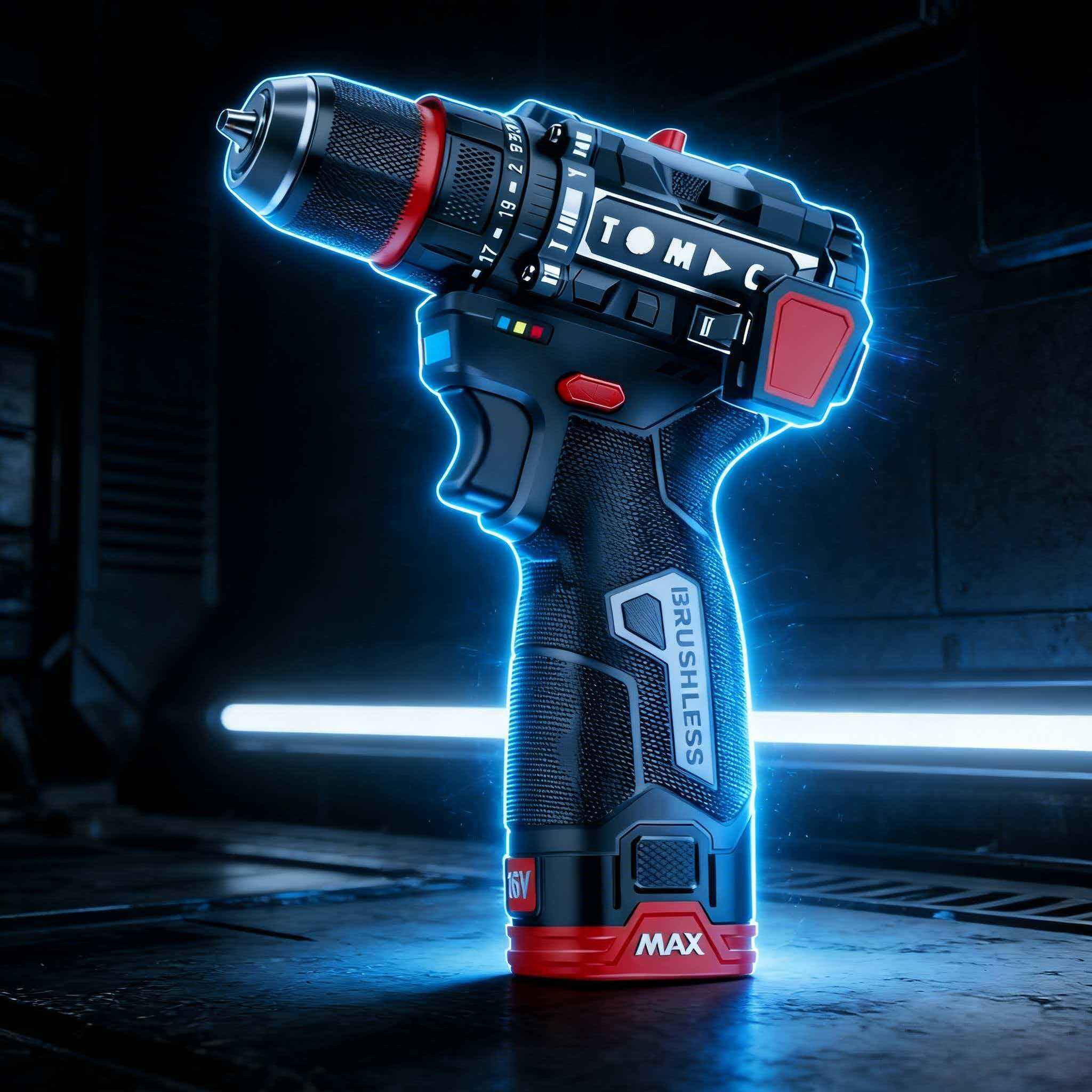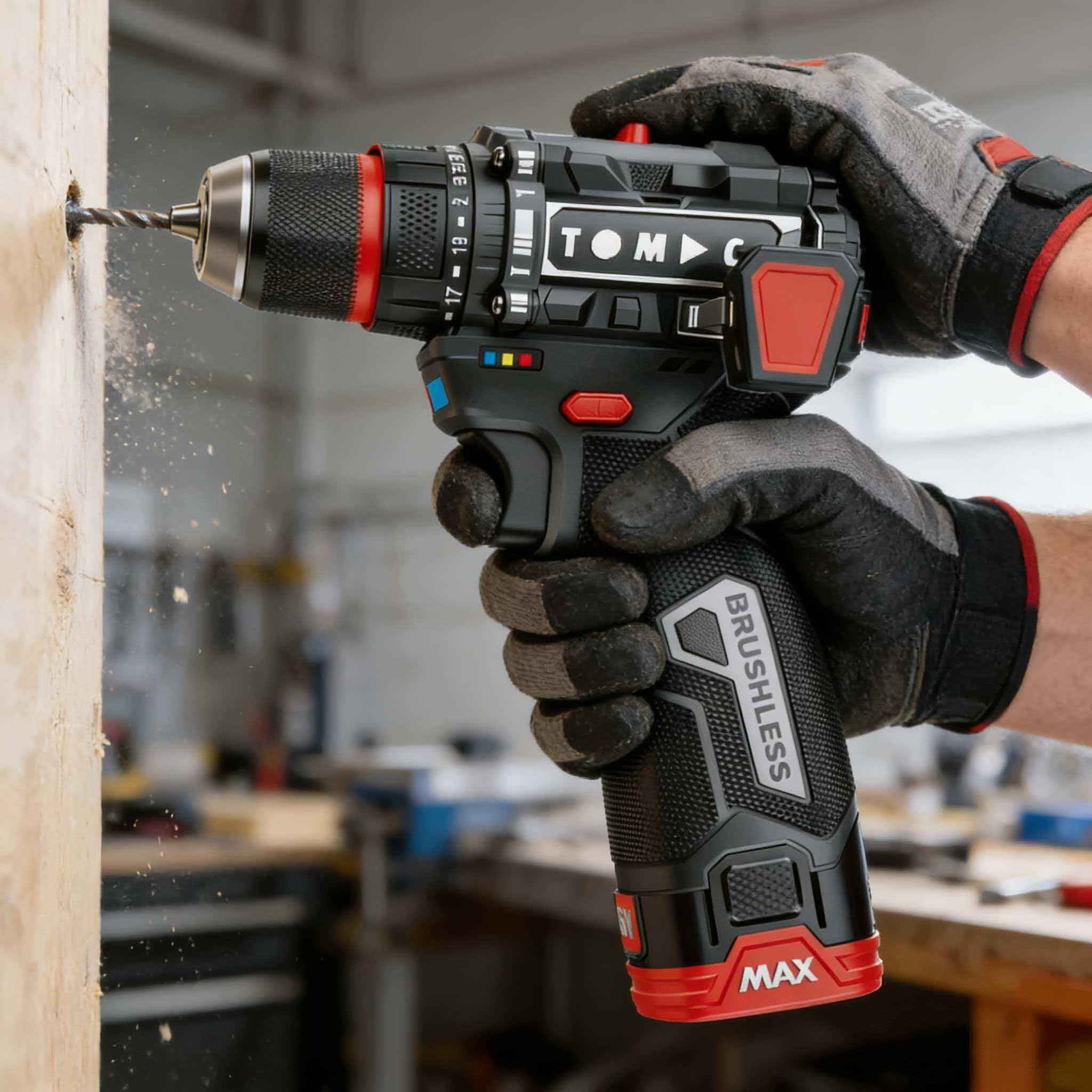 TC114240 TOMAC 16V Brushless Cordless Drill Driver – 40N.m Torque, 2-Speed 1800rpm, 10mm Keyless Chuck, 2.0Ah Battery, Ideal for Home Improvement and DIY, Includes Belt Hook