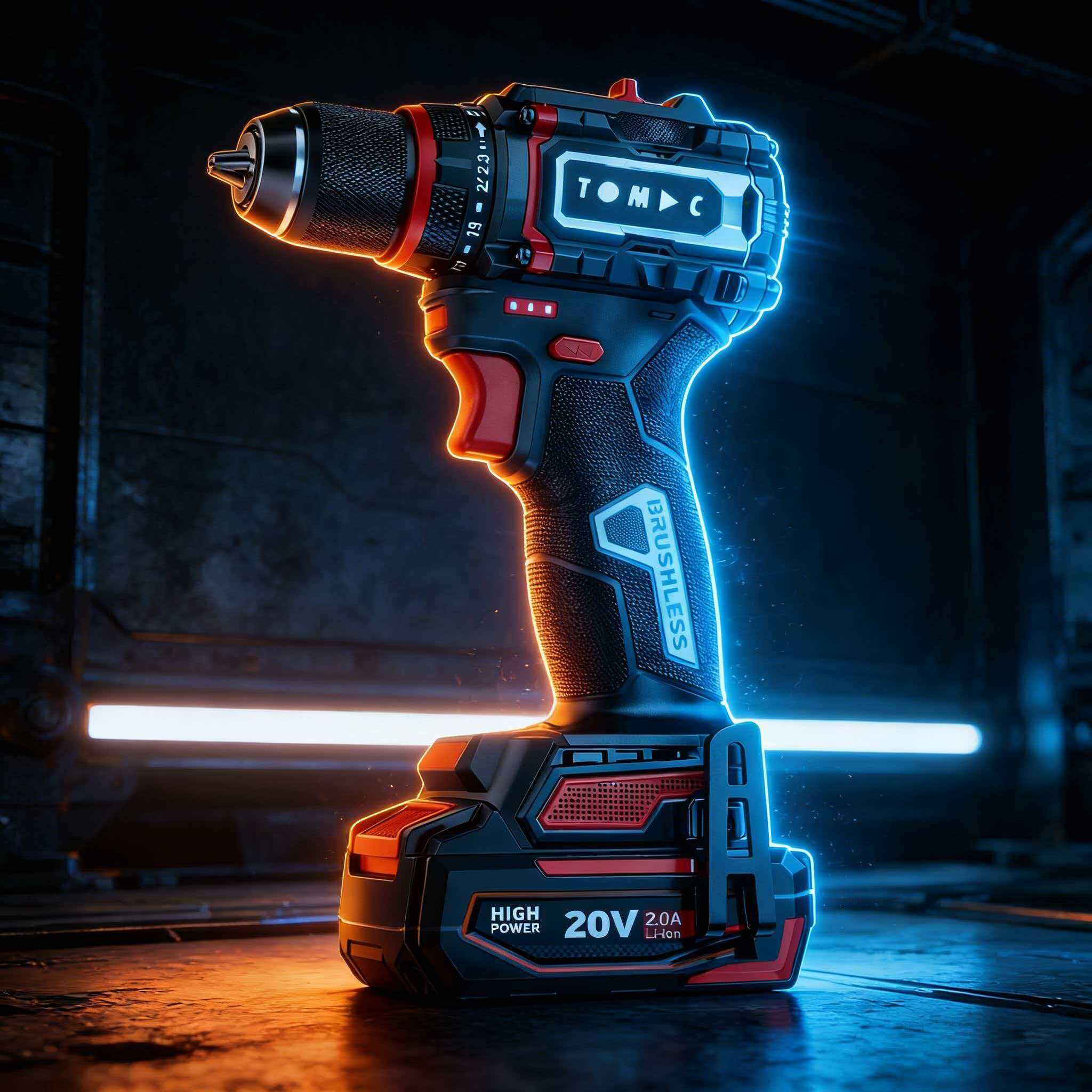 TC114290 TOMAC 20V Brushless Cordless Drill – 90N.m Torque, Gyroscopic Electronic Anti-Twist Safety, 2000rpm, 13mm Chuck, 2.0/4.0Ah Battery, Industrial Grade for Heavy Duty Work, CE certified