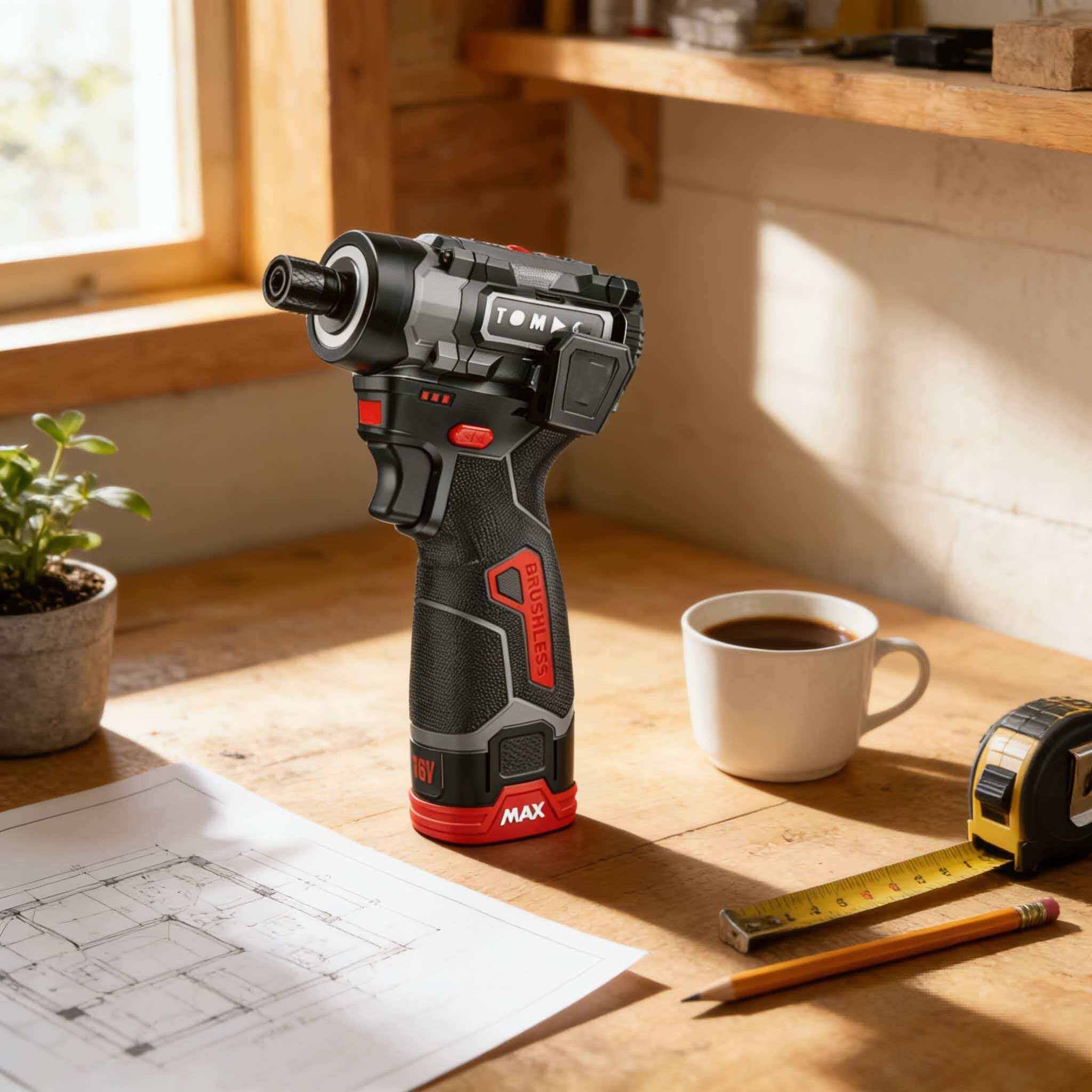 TC1152140 TOMAC 16V Brushless Cordless Impact Screwdriver – 140N.m Torque, 3400rpm Speed, 3800bpm Impact Rate, 2.0Ah Battery, Perfect for DIY and Mechanics, Includes Belt Hook,CE certified