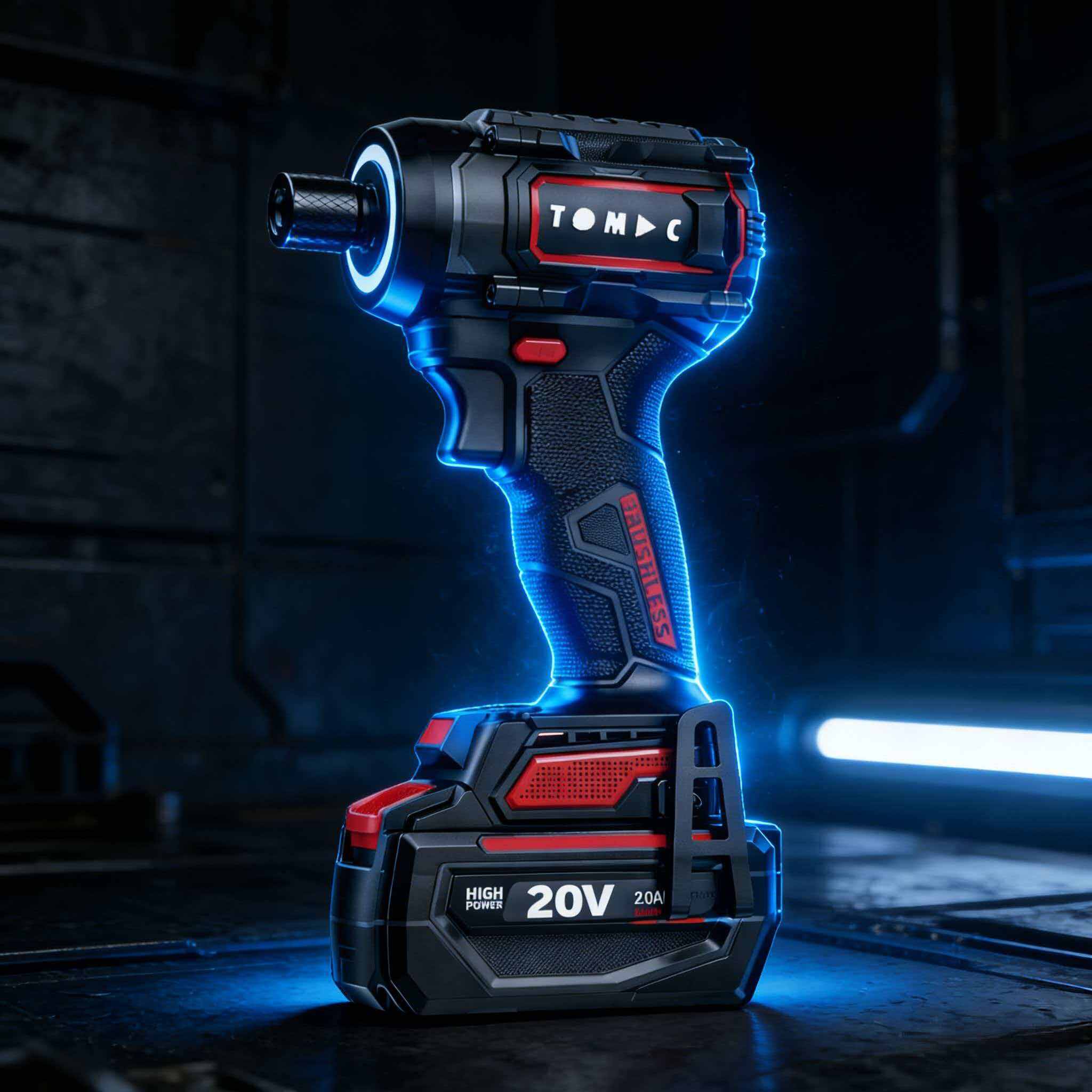 TC1152230 TOMAC 20V Brushless Cordless Screwdriver – 230N.m High Torque, 3200rpm Speed, 3800bpm Impact Rate, 2.0/4.0Ah Battery, Professional Grade for Heavy Duty Fastening, Includes Large Hook, CE certified
