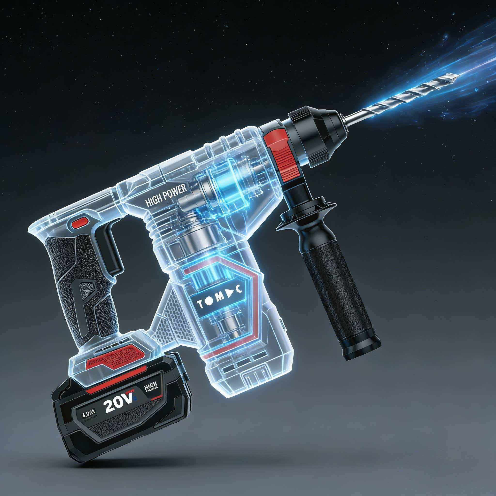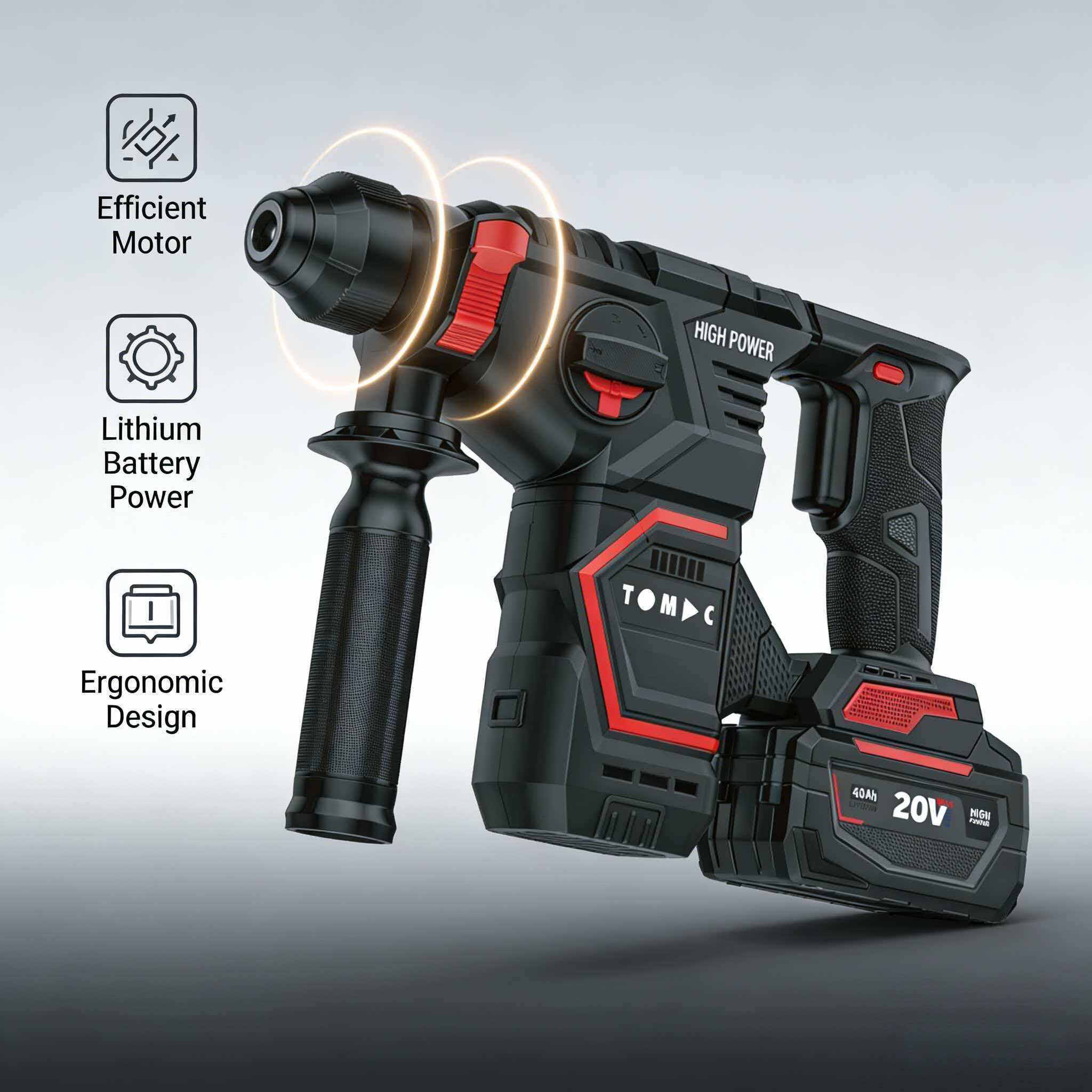 TC116222 TOMAC 20V Brushless Cordless Rotary Hammer – 22mm Concrete Capacity, 4800bpm Impact Rate, 1450rpm Speed, 4.0Ah/6.0Ah Battery, Professional SDS Drill with Auxiliary Handle,CE certified